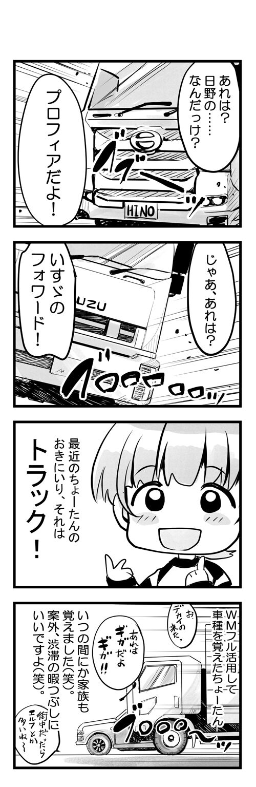 トラックの種類はメーカーとサイズで系統立てて覚えることができるので、どうやらそれもちょーたん的には楽しいそうで。