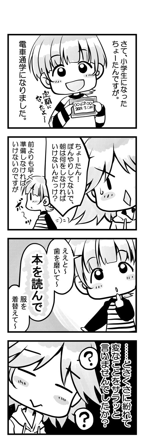 鉄道路線マニアになったちょーたん、電車通学はしっかりと楽しんでいる様子です。
