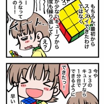 漫画では書いていませんが、4×4のキューブも完成させられるようになってます。4×4はだいぶ難しかったようで、YouTubeを見ながら練習を繰り返していました。「〇〇さんはすごく上手なんだよ!」「……〇〇さんって、誰?」いろんなユーチューバーの方がいるんですねぇ😆ちょ ...